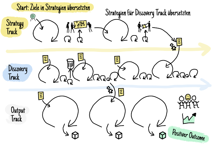 Die meisten Organisationen arbeiten in Silos. Die Strategie-Ebene plant, die Discovery-Ebene recherchiert, die Execution-Ebene baut. Dazwischen: Funkstille. Anforderungen werden falsch verstanden, Erkenntnisse kommen zu spät, Teams arbeiten an den falschen Problemen.